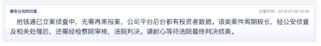 上海公安局静安分局本周一回应某爆雷P2P平台的受害者称,“涉事平台立案后,投资人无需再来报警,该类案件周期较长,需要公安侦查后,再经检察院审核、法院判决。”可以预见,未来等待这些投资者的,将是漫漫维权长路。