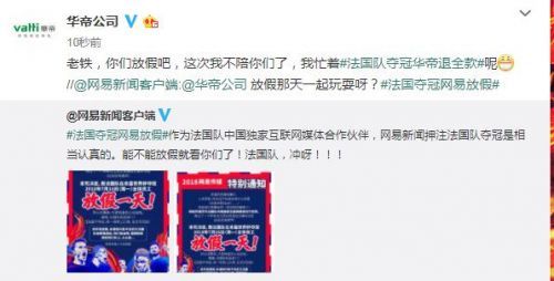 「朋友圈什么最火:法国队夺冠,网易员工就放假」7月13日