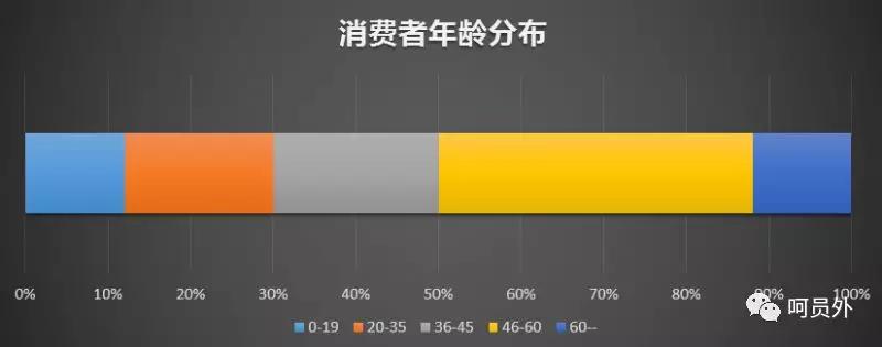 经过两个月的数据收集,我们发现这个店铺的消费者年龄分布是中年甚至老年人居多,并且他们停留在店面的时间也是最长的。
