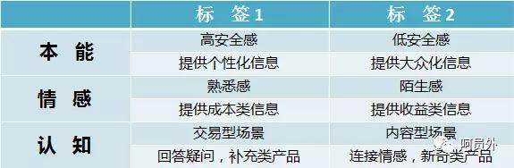 不同的营销场景给予消费者的情感比较复杂,为了把复杂的问题简单化,这里把标签分为两类,就是熟悉感和陌生感。