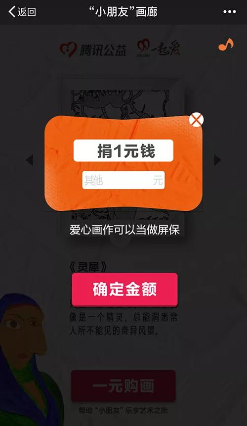 再比如腾讯“一元购画”公益活动H5,刷爆朋友圈的事件!