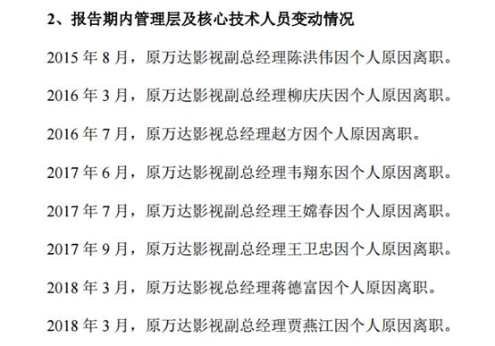 在此次深交所的问询函中,有一个值得注意的细节是2015年至今万达影视先后有两任总经理、六任副总经理离职。