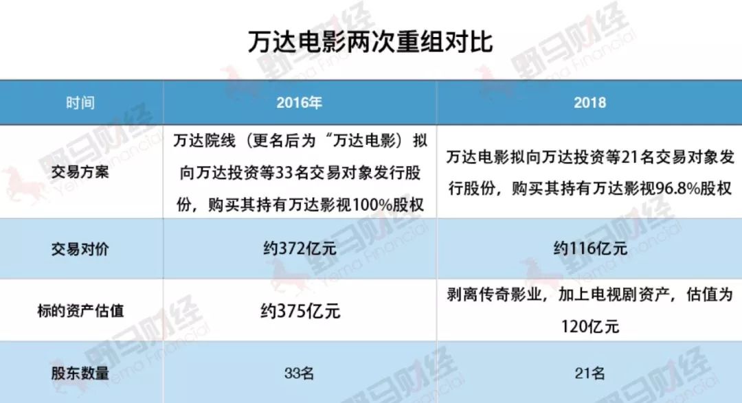 2016年发布的重组预案中的标的资产“万达影视”,原本囊括传奇影业,这一次重组草案中已经被剥离,取而代之的是后来新注入了主营电视剧业务的公司新媒诚品。