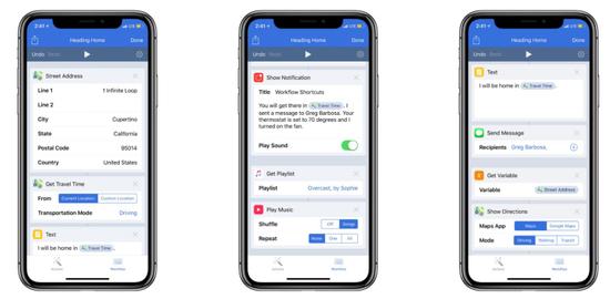 大会上展示了“回家”的快捷功能。当说出“回家”这一指令,Siri则会按照事先的设置打开地图导航回家、设置好家里的温度、并给舍友发信息告诉她自己预计到家的时间。