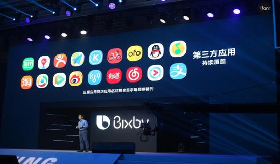 在早期Bixby发布会上,曾介绍Bixby中文版支持超过30款原生应用,可支持7000余种功能。合作的第三方主流应用包括爱奇艺、百度地图、酷狗音乐、摩拜单车、ofo、支付宝、新浪微博、腾讯新闻等,覆盖应用数量在持续增加。