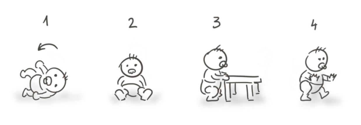 在我们能坐稳之前,我们的行动基本上处于打滚翻身的状态,然后再是能站稳,之后才是走和跑。