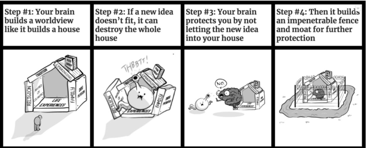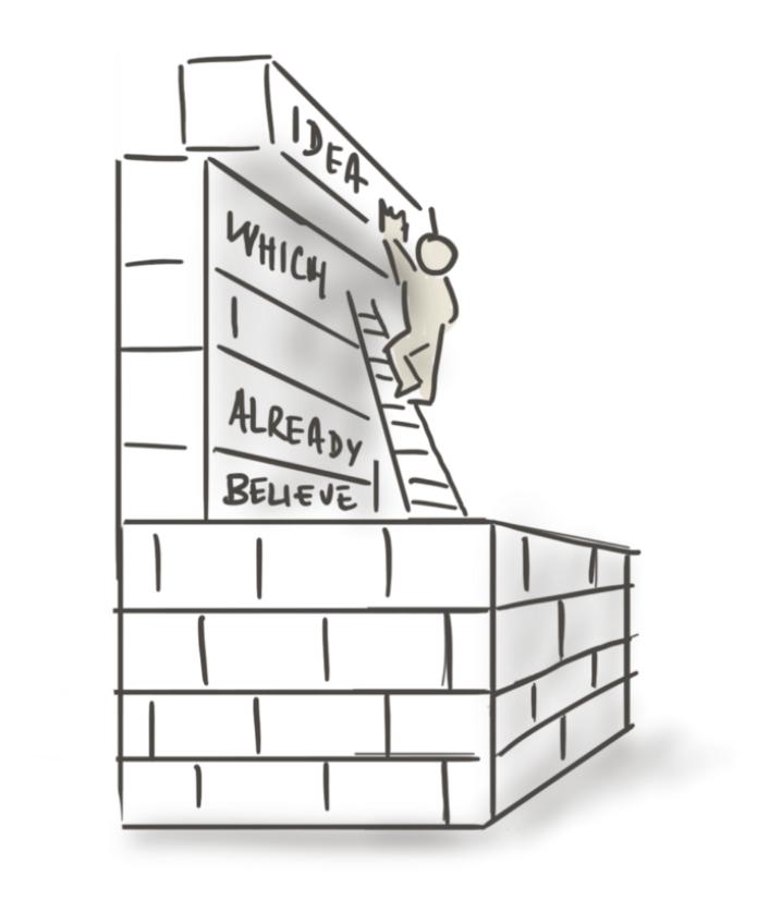 从某种程度上说,我们都是在被护城河环绕的摇摇晃晃的“知识大厦”里走来走去;不过,如果我们让新的、不符合之前认知的信息进来,我们可以加固建筑。
