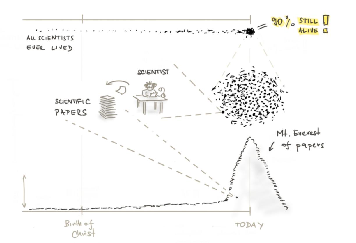 如果这还不足以让你大吃一惊的话,想想90 %曾经生活过的科学家今天还活着。这些科学家中的每一个都在提高新信息产生的速度,并减缓旧信息衰减的速度会什么样子。此外,值得注意的是,一些最有趣、最重要的未来领域(例如人工智能和加密货币)变化最快。