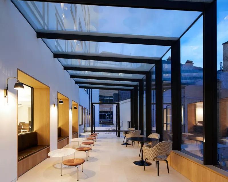 将9,600吨英国德比郡的浅色砂岩,与纯天然材质混合后所打磨出的天然风貌,既与周边的历史建筑相衬,又展示出岁月赋予建筑的独特优雅。