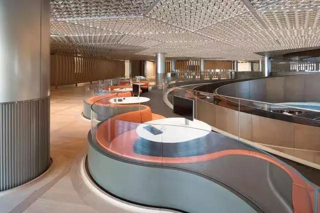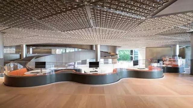 简单的线条、天然的材料给整个建筑营造出一种非常轻盈、优雅的感觉,楼层之间的互相连通让人们可以看到整个建筑的视野,给人开放的感觉。