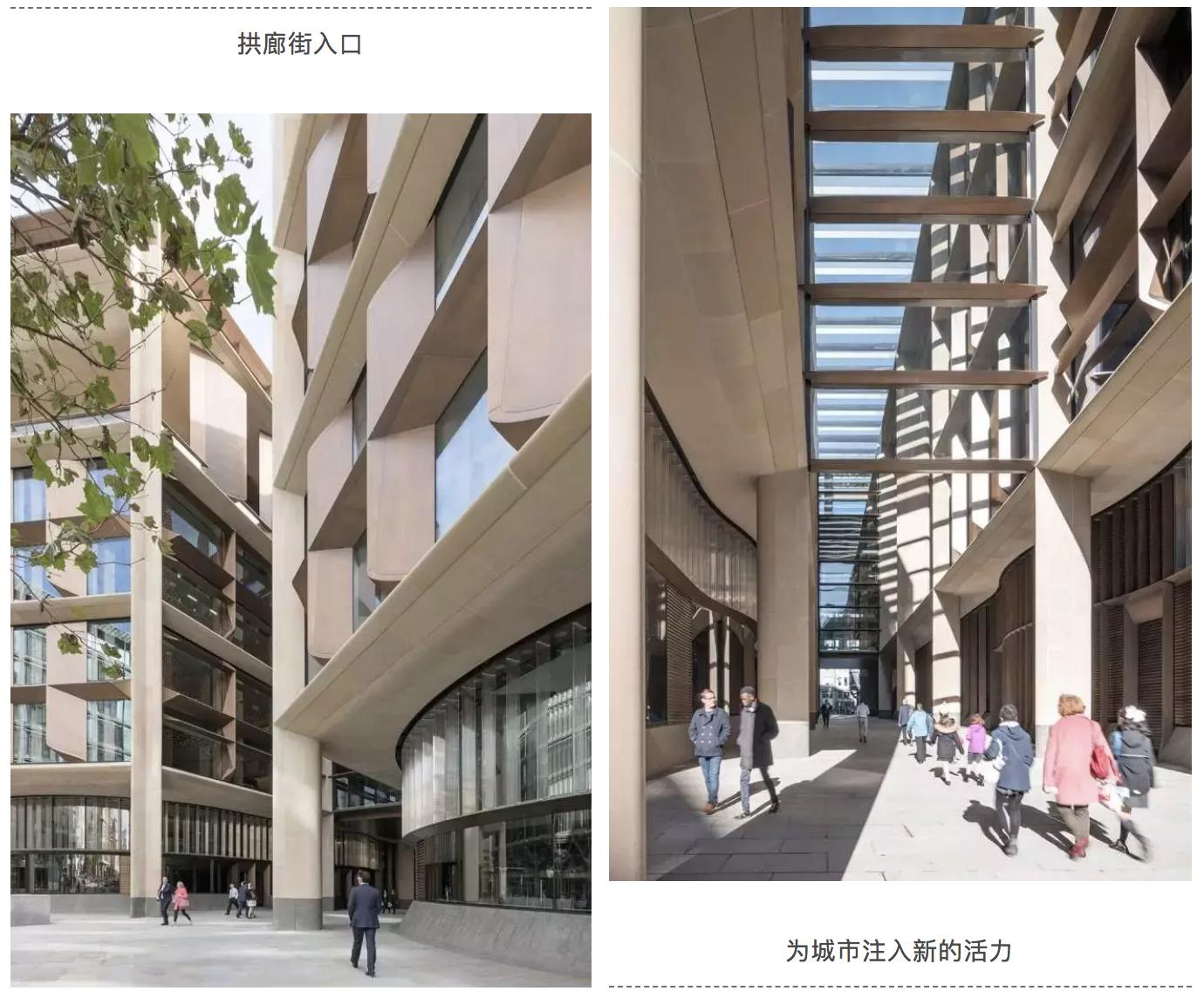 大楼占据了整个街区,3.2英亩的场地中包含两座建筑,由一座廊桥相连,廊桥下方的人行道激活了其所在的Watling大街,古老的罗马式街道贯穿了整个场地。