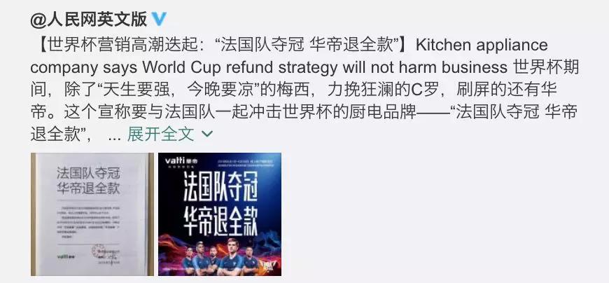 在 6 月 30 日 1/8 决赛,法国 4:3 淘汰阿根廷晋级 8 强,华帝于当晚宣布退款活动延长 3 天(给人一种惊喜感),至 7 月 3 日晚上 22 点结束。