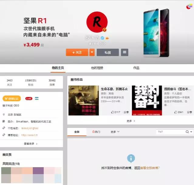 再打开靠情怀造就锤子手机的罗永浩微博,陡然发现曾经热捧的 TNT 内容不复存在,是删除了还是设置了个人可见,或许也只有他自己才知道了。