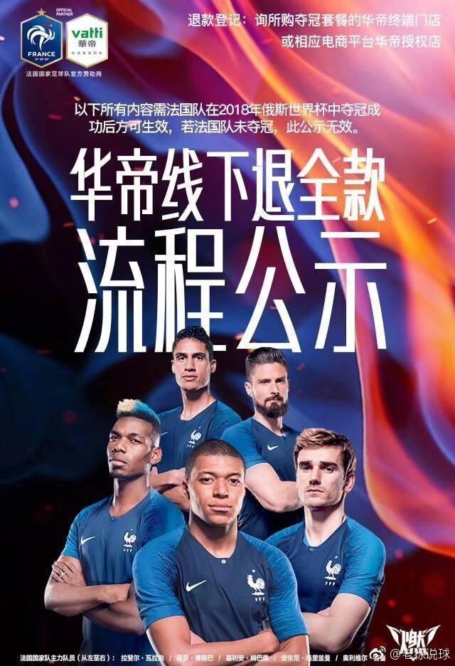 华帝公司:庆祝法国队夺冠,华帝退全款启动