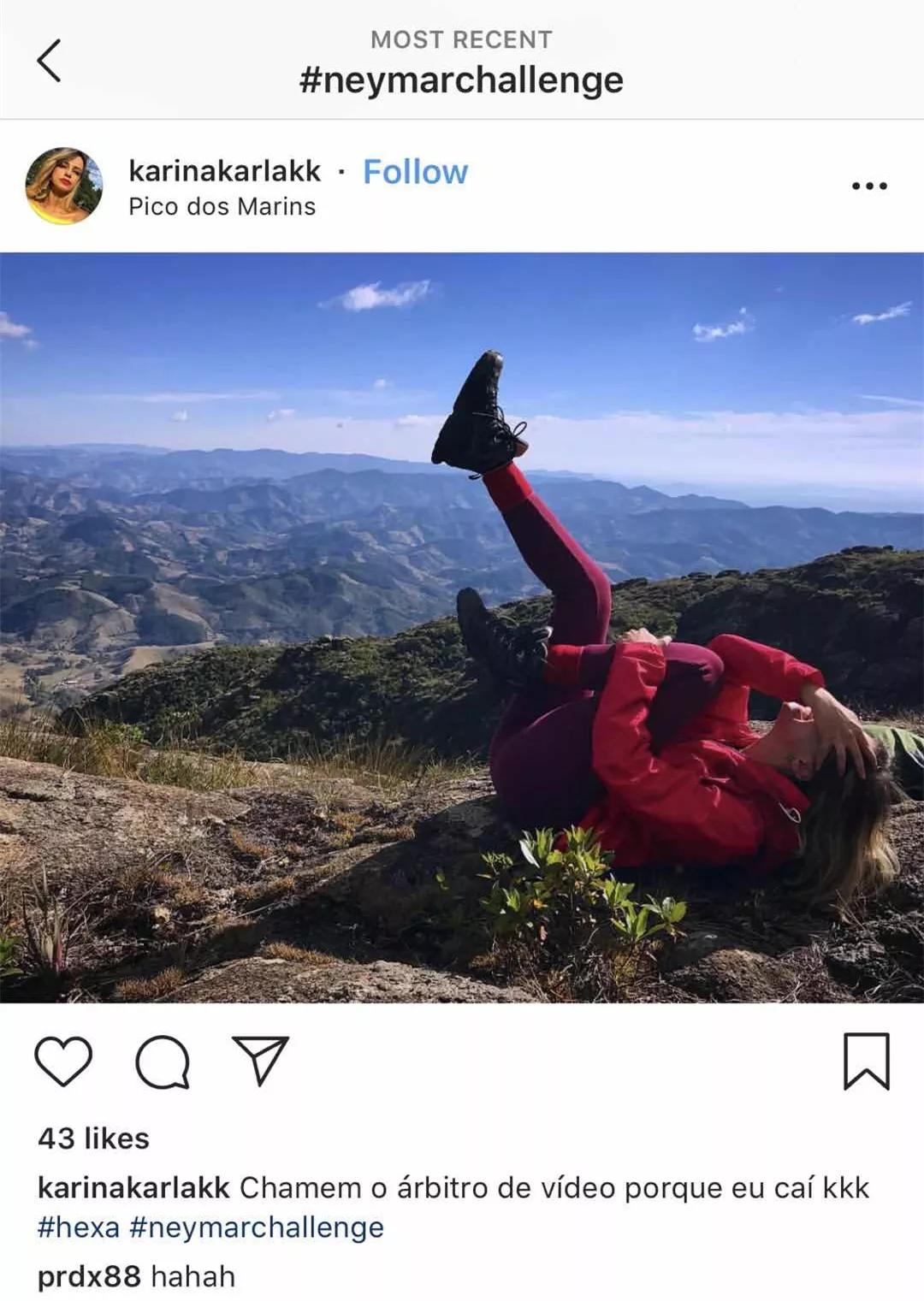 除了做表情包和动态图,世界各地的球迷还发起了内马尔挑战(#NeymarChallenge)。虽然我们球踢得没有内马尔好,但可以像他一样在地上滚啊!