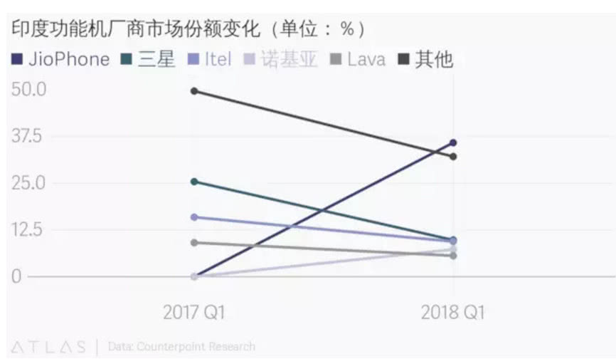对于印度人民来说,买手机注重是能用,好用,用的久,最关键是便宜。所以功能机在印度市场依然非常畅销。根据市场调研公司 Counterpoint Research 的报告,2018 年第一季度,印度市场的手机出货量同比增长了 48%,主要的驱动力来自于出货量同比增长了 1 倍的功能机。这决定了苹果与该市场是无缘的。