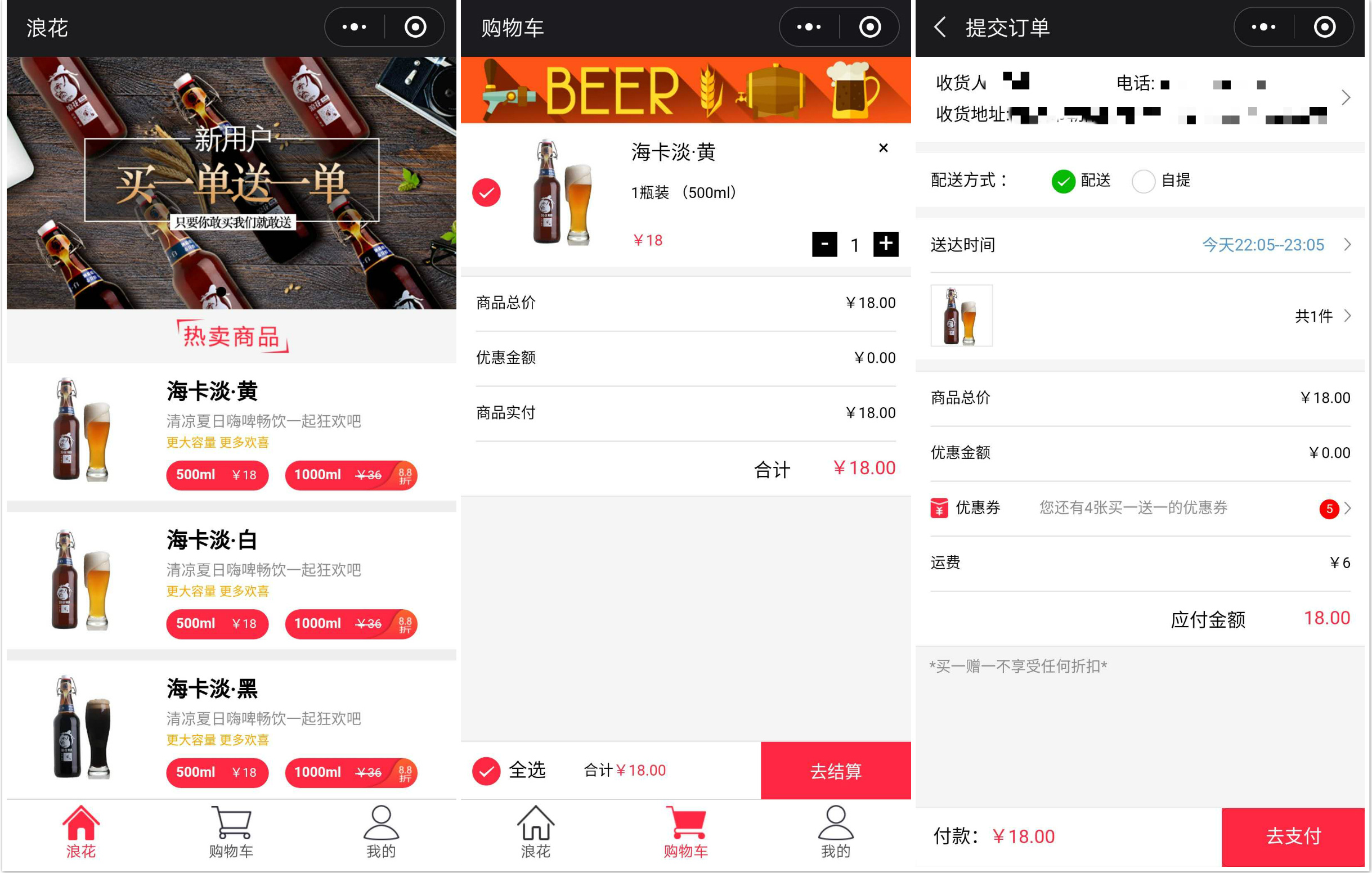 36氪最近接触到的“浪花鲜酿”就想用外卖的形式打入家庭、聚会场景。在社区、商圈周边设立比较简单的网点,消费者通过小程序在线下单,可以自提或外卖拿到现打的精酿啤酒。