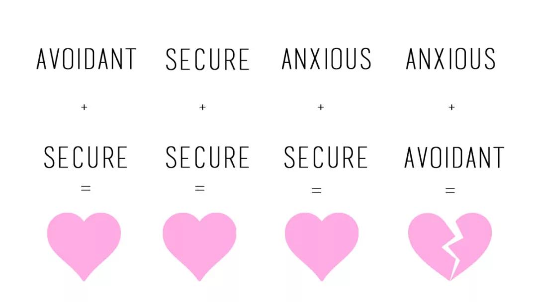 “假如你是安全型依恋的人,那很好,你可以跟任何一种依恋类型的人很好的交往,”一位在伦敦的外国情感博主在自己的博客中写道,“但如果你和你的另一半分别是焦虑型与回避型,那么很有可能你(或者你的另一半)会觉得自己并没有从这段关系中获得到自己想要的东西,而你的另一半(或者你自己)可能会因此感到压力和窒息。最后,这段感情很有可能会以不愉快的方式结束。”