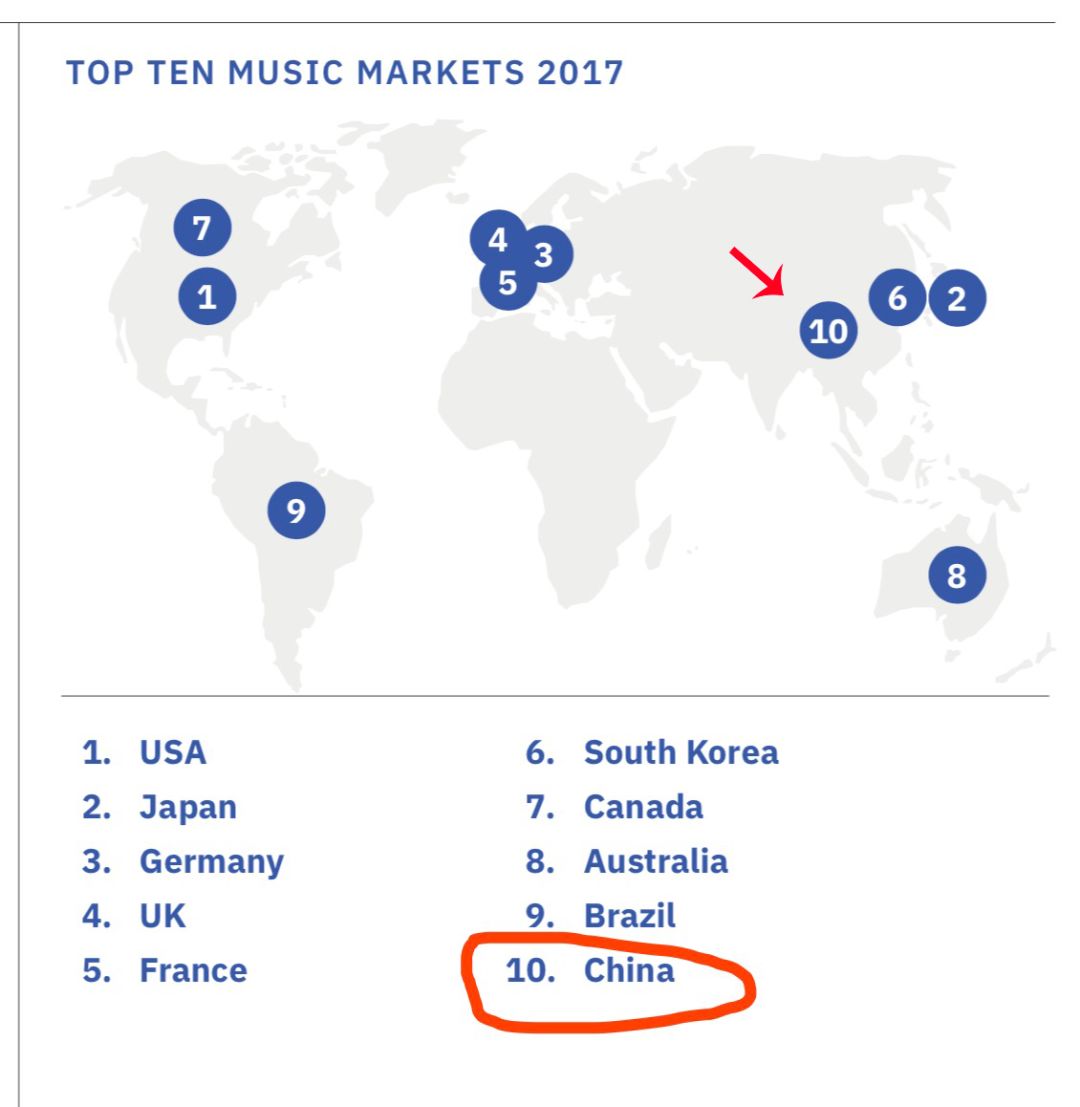 IFPI(国际唱片业协会)今年4月份发布了一年一度的“全球音乐报告”,报告显示,中国音乐产业取得历史性的突破,首次进入全球十大录制音乐市场行列。