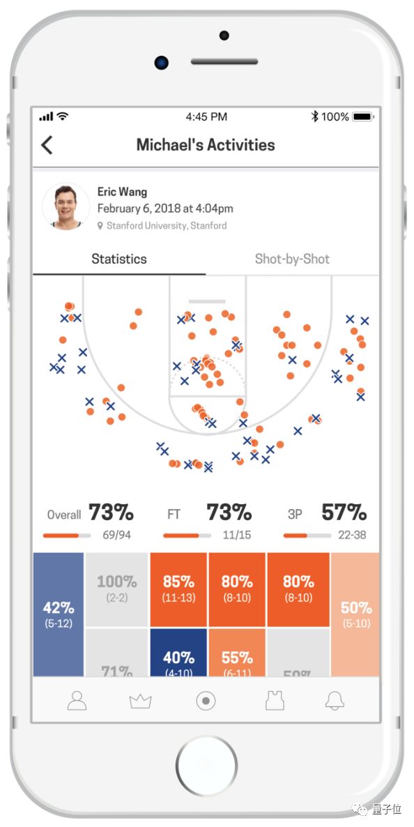 这个APP可以记录球员每次投篮的位置和准确度,方便判断自己的薄弱环节。