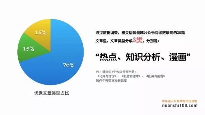 通过统计后发现,优秀公众号文章类型与目标公司公众号的文章类型并不一样,分别是:热点、知识分析、漫画。(这3类仅仅是举例)