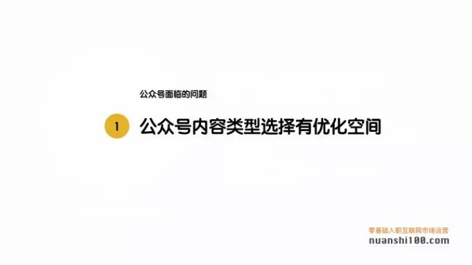 通过数据对比会得出一个结论,也就是目标公司公众号面临的第一个问题,公众号内容类型选择有优化空间。