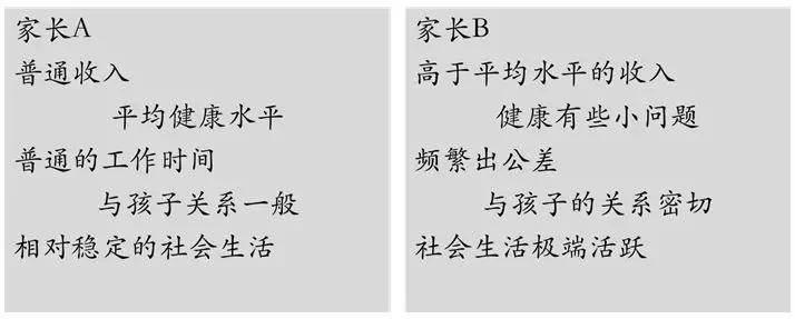 案例三:在很多其他领域,我们也能找到典型的案例。譬如在司法审判中,即便是经验丰富的陪审团成员,也会受到信息表述方式的影响。有这样一个家长A和家长B离婚、争夺子女监护权的诉讼,两个家长各自情况有所不同(如下图描述)。