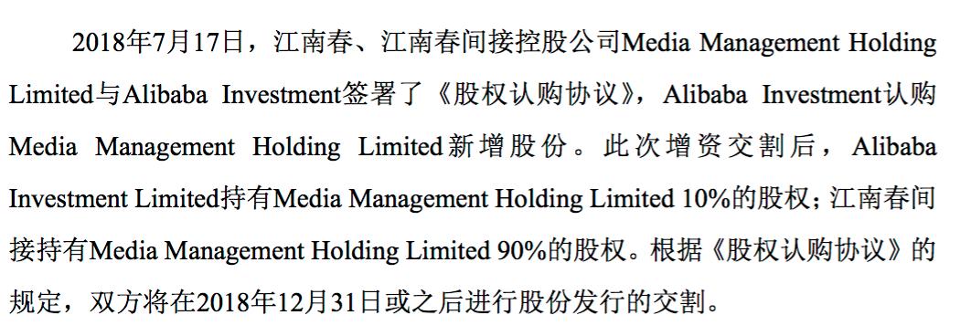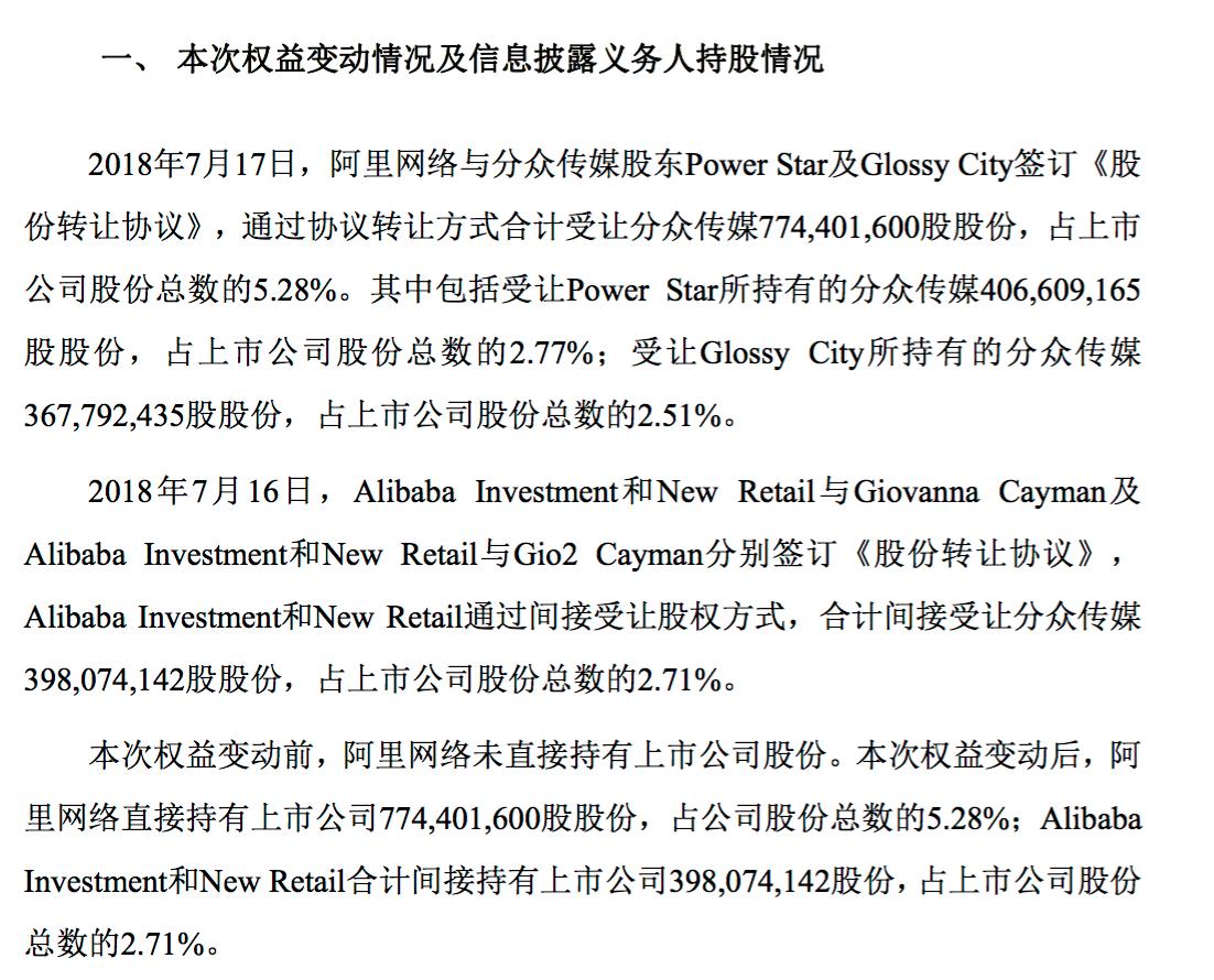 分众传媒与阿里巴巴网络、阿里巴巴投资及增资的股权交易公告截图