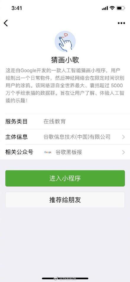 谷歌推出首款微信小程序猜画小歌:与AI玩你画我猜