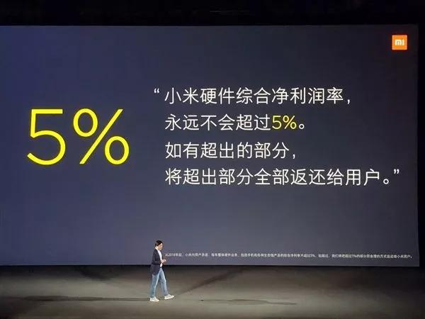 这次发布会雷军宣布了小米董事会前几天批准的一项决议:“从现在起,小米正式向用户承诺,每年整体硬件业务,(包括手机及IoT和生活消费产品)的综合税后净利率不超过5%。如超过,我们将把超过5%的部分用合理的方式返还给小米用户。”