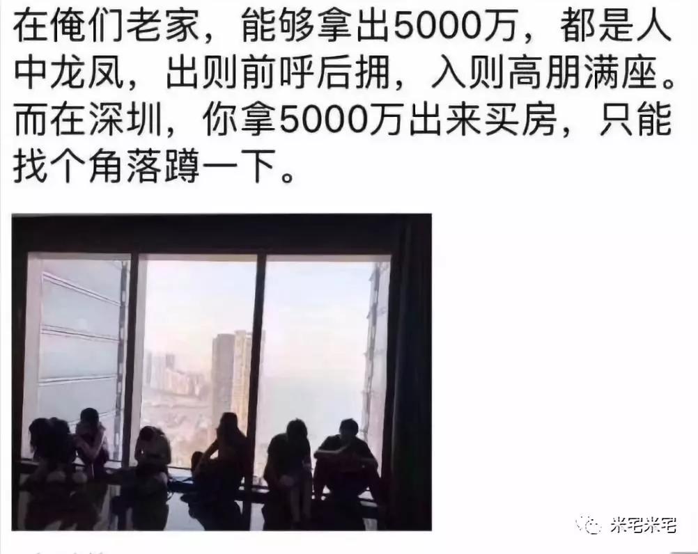 你拿5000万买房,本应非富即贵,在老家都是响当当的土豪,出门前呼后拥,但在这儿也只能找个角落蹲一会儿。