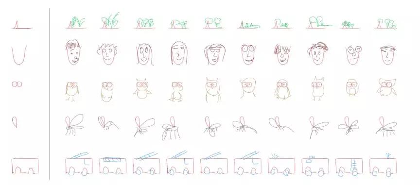 科研人员还发现,RNN模型的确对不同的涂鸦进行了类比。
