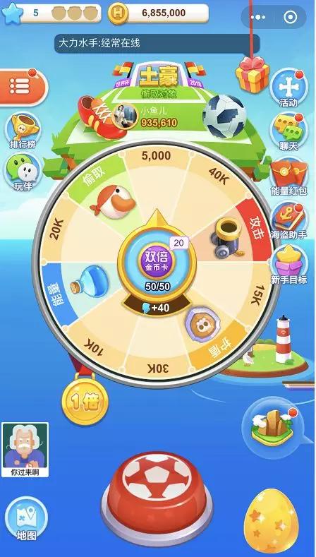 而这类游戏也利用了不确定性,比如「海盗来了」,当你转盘的时候,你可能会转到金币,也可能转到攻击、偷取、护盾等。