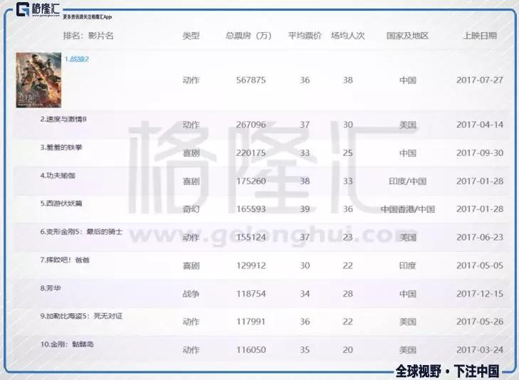 时间倒回十年前,2008年中国电影票房最高的是吴宇森的《赤壁》,票房为2.75亿,这个数连去年的前三十都排不进去,实在有些不可想象。