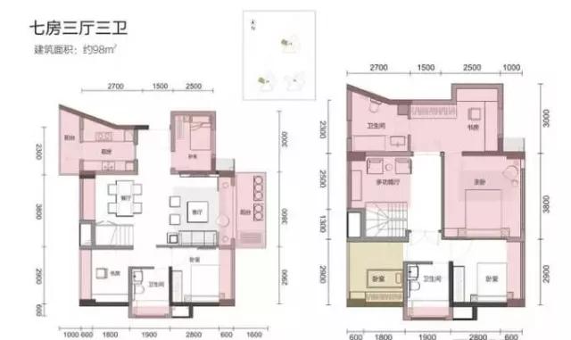 阿ben购买的小区,98㎡能做成七房三厅三卫神户型 ,33㎡能做成四室两厅。