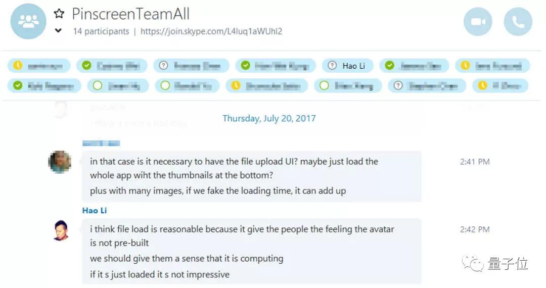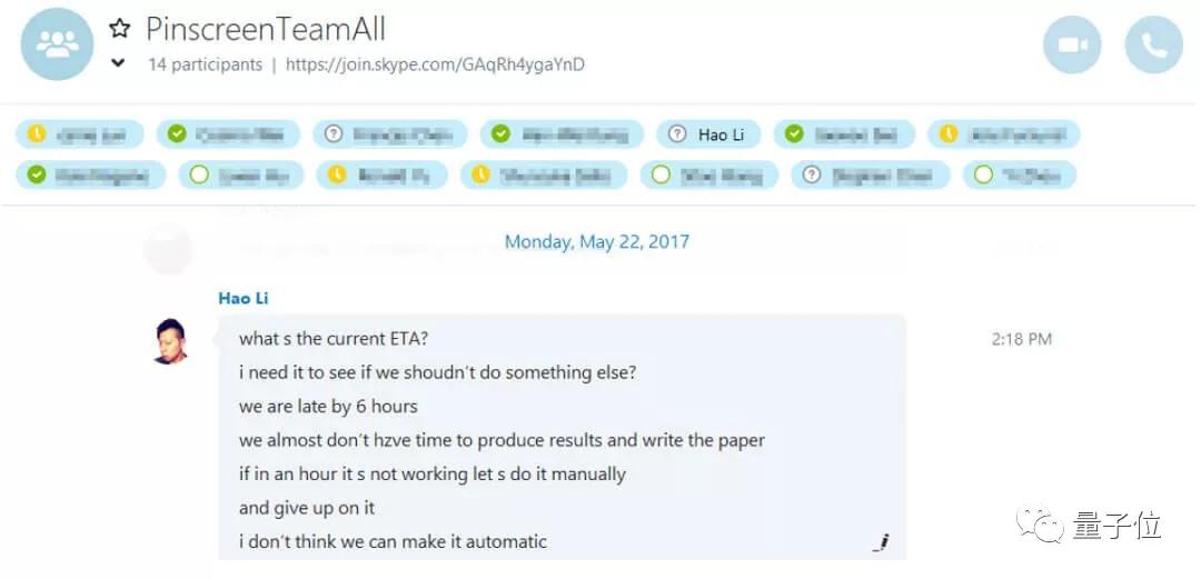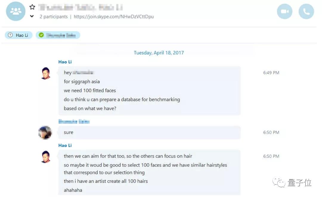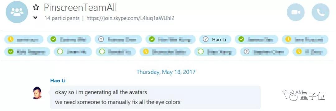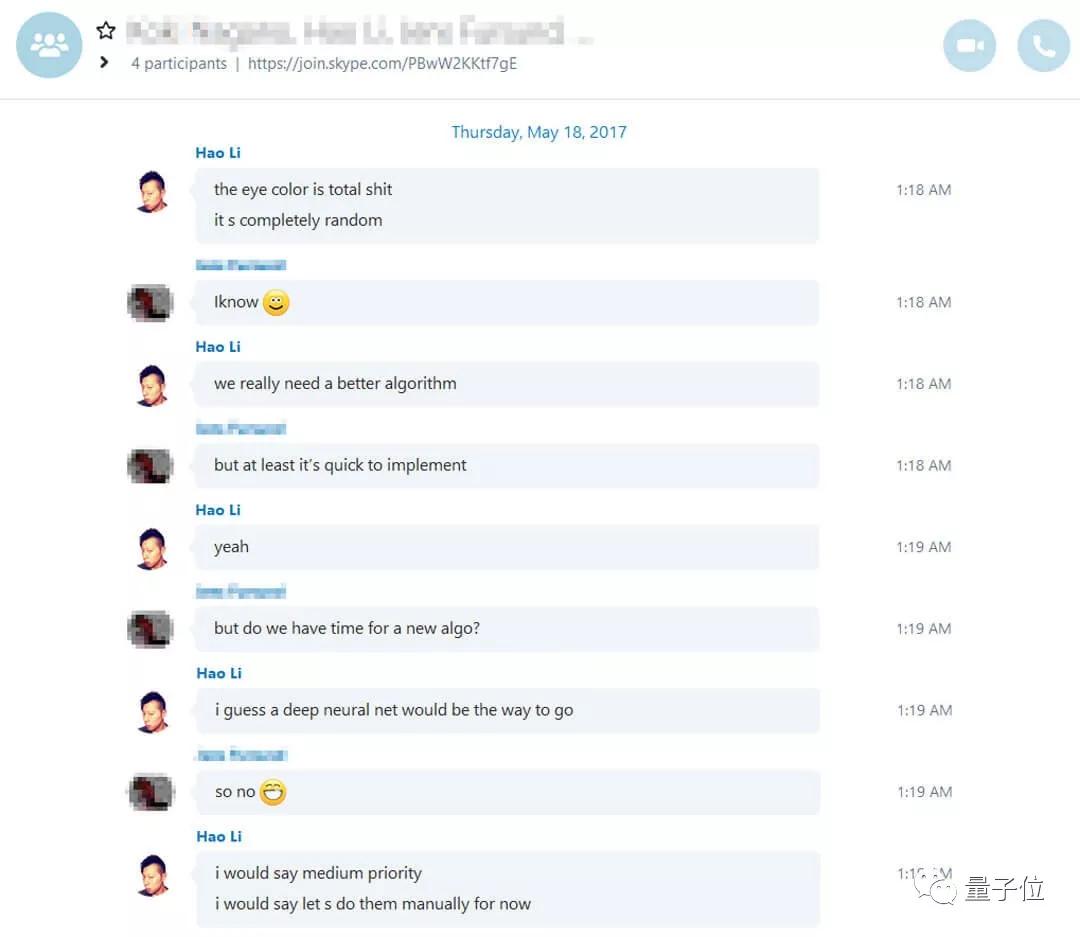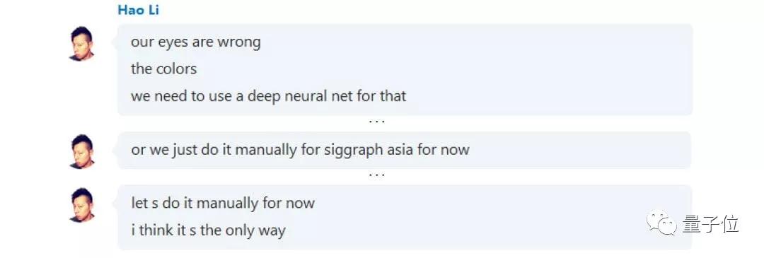 除了头发之外,头像的眼睛也出了问题。黎颢想到了两个解决方案:用深度神经网络,或者先手动搞定。从聊天记录截图来看,他还是比较倾向于后者。