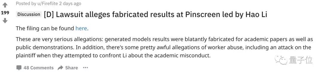 诉状称,Iman加入Pinscreen之后逐渐发现公司和CEO黎颢数据造假、学术不端,还欺骗投资人。
