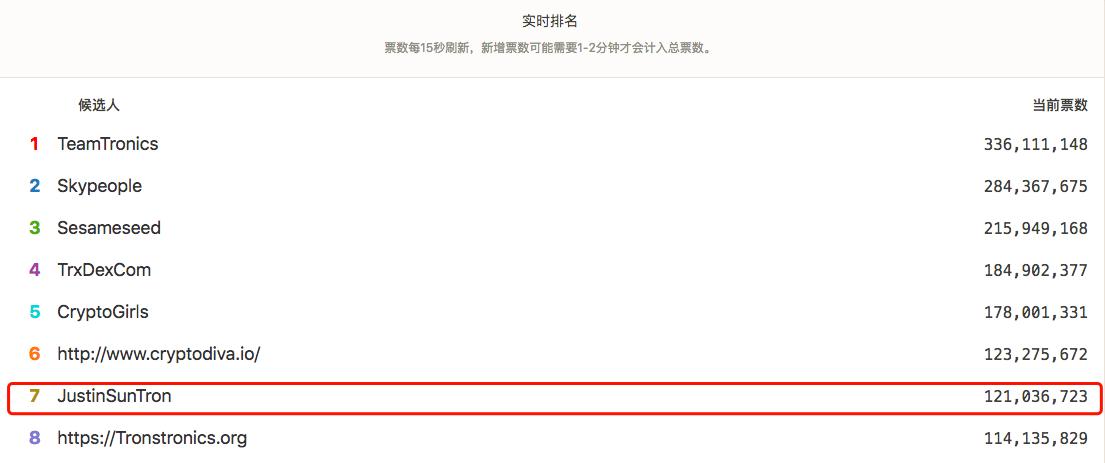 TRX 和 EOS 一样,选择了 DPoS 共识机制,超级代表(或称超级节点)则是 DPoS 机制的核心。波场超级代表选举于今年 6 月 26 日发起,候选人必须获得超过 1 亿张选票才能当选,每出一个区块,波场便会给予超级代表 32 个 TRX奖励,每年总计 1,009,152,000 TRX 将会被奖励给 27 位超级代表。超级代表除了可享受到每年千亿级别的奖励,还享有一定的控制权,引发“大庄家”们之间激烈的角逐。