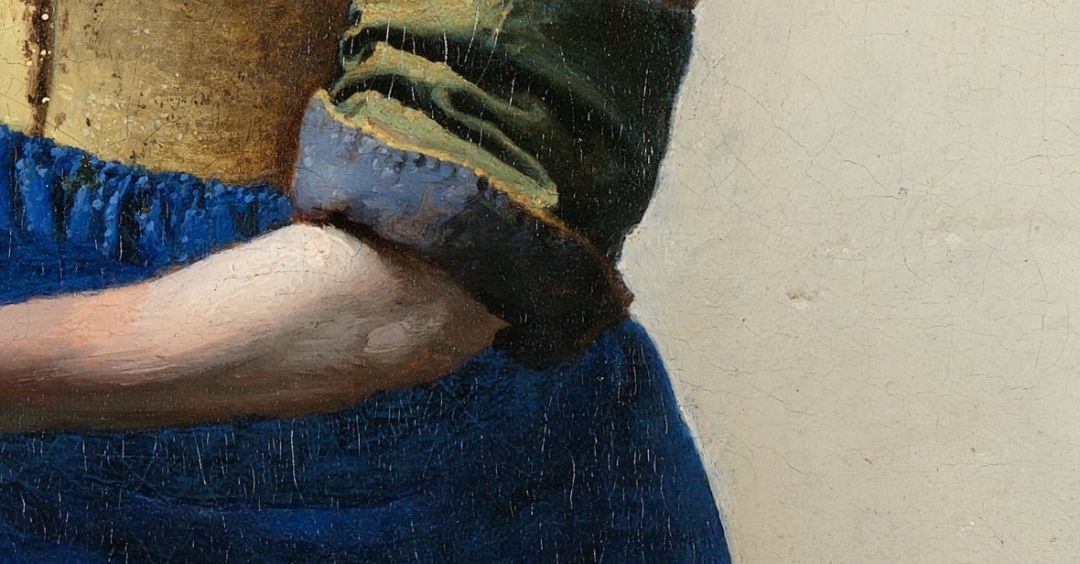 有趣的是,维米尔画中的物体还会呈现出诡异的弥散斑(disc of confusion),在名作《戴珍珠耳环的少女》(Girl with a Pearl Earring)与《倒牛奶的女佣人》(The Milkmaid)中,我们甚至还能看到使用透镜才会出现的红蓝光色差现象。
