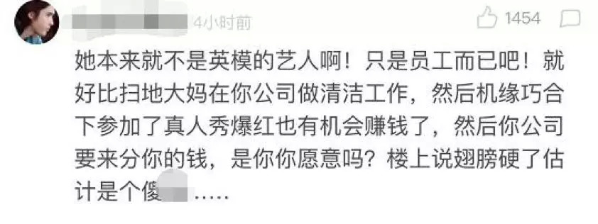 随后,英模方面回应称希望达成和解,不愿意走到解约的地步。并透露针对解约的直接赔偿:“非常少的数字,六位数。”甚至公司高层表明原计划“对她的投入会在一两千万”。
