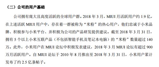 在6月7日小米提交给监管机构的公开发行存托凭证招股说明书中,该公司关于“米粉”规模有这样的表述: