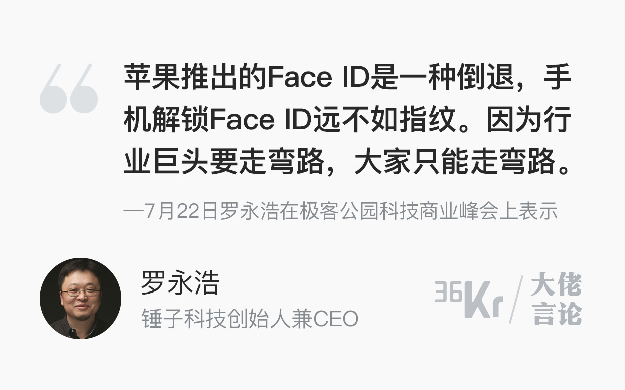 大佬言论 | 罗永浩:苹果的Face ID是一种倒退
