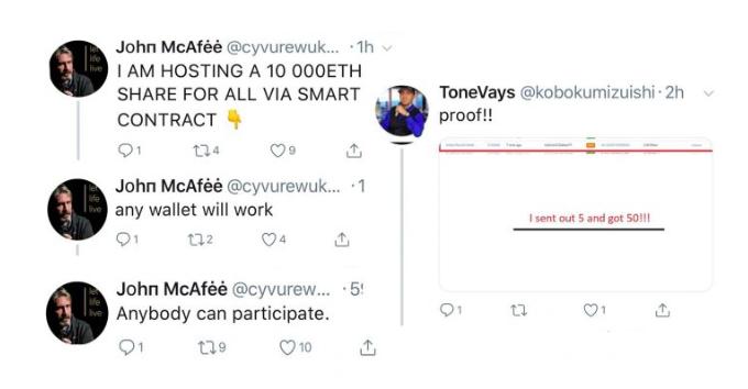 根据此前媒体报道,推特每天都在删除数以百万计的诈骗账户,在 5 月和 6 月关闭了 7000 多万个。然而,加密货币行业仍然存在大量假装成比特币名人的“ ETH 诈骗机器人”,而欺诈者已获利数百万。据新闻截图,假冒 John McAfee 和 Tone Vays 的推特账户称,如果用户转给他们 5 枚 ETH,将在用户发送资金后返还 50 枚 ETH 作为回报。