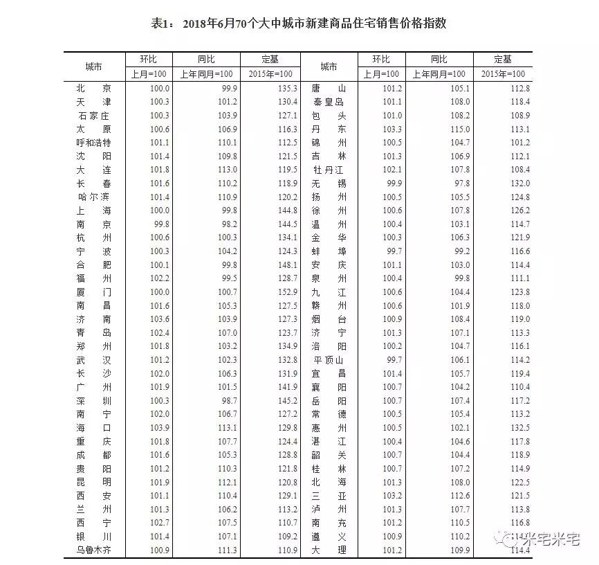 国家统计局7月17日发布了2018年6月份70个大中城市商品住宅销售价格变动情况统计数据。