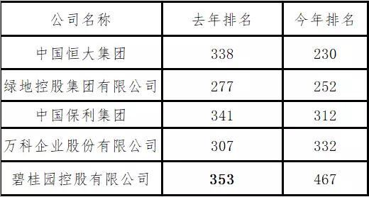 从大家最关心的房企来说,有个比较突出的地方是榜单上的房地产企业均来自中国,如恒大、绿地、保利、万科、碧桂园等。看一下这五家房企去年和今年的排名情况,会发现除万科外都处于上升趋势。