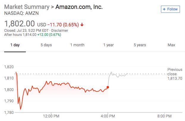周一,亚马逊的股票在特朗普的最新推文之后一度下跌2%,最终收跌0.65%,但盘后上涨0.67%。
