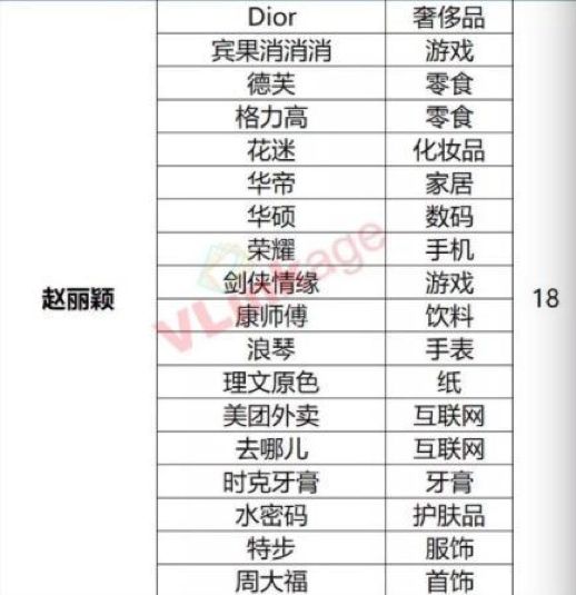 流量明星的代言品牌较多,通常都会稀释掉各个代言品牌的调性。比如说我们查赵丽颖的代言品牌,能查到数十个。