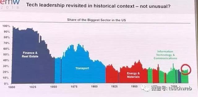 对此,金沙江创投合伙人朱啸虎给雷帝网列出一张表:18世纪到19世纪大部分时间是房地产公司和金融占90%以上市场份额,在火热的大开发时代是交通,后面是能源和新材料。
