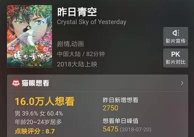 ▲《昨日青空》的有16万人想看(猫眼专业版/图)