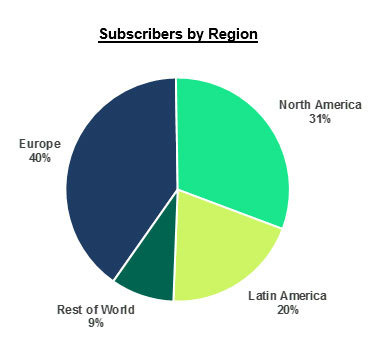用户付费收入方面,第二季度用户平均收入为4.89欧元(约38.69人民币),同比下降12%,较上一季度增长4%。Spotify表示,排除外汇汇率的影响,ARPU将同比下降6%。如图所示,Spotify的订阅用户地区跨度较大,因此,需把汇率带来的变动因素考虑在内。